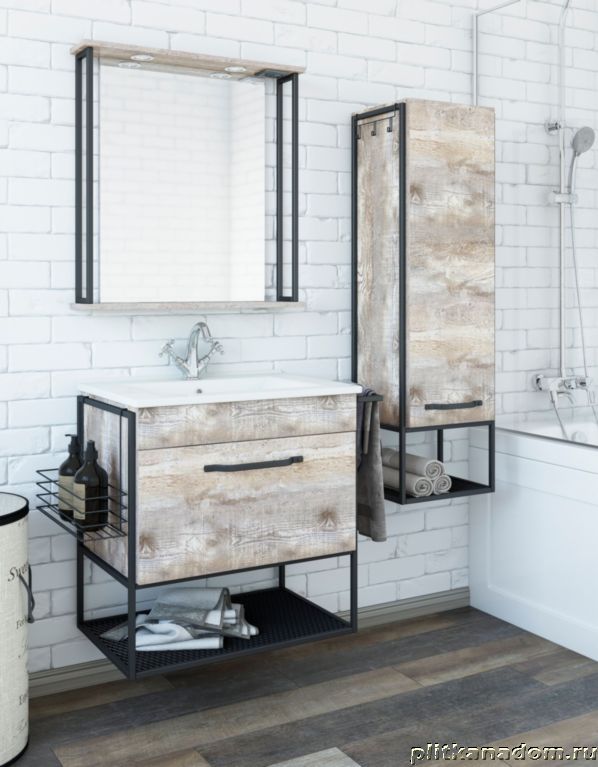 Sanflor Бруклин Тумба 65 подвесная, с раковиной Оскар 65 (Kirovit), бетон пайн, экзотик 87,2х68,8х47,9