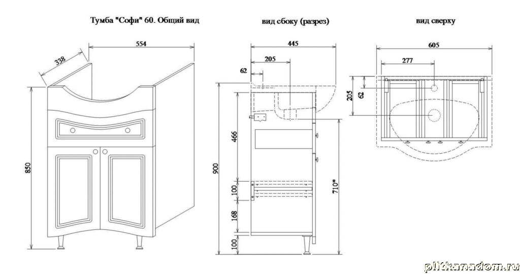 Sanflor Софи Тумба 60 с раковиной Элеганс 60 (Rosa), Белая 60,5х44,5х86