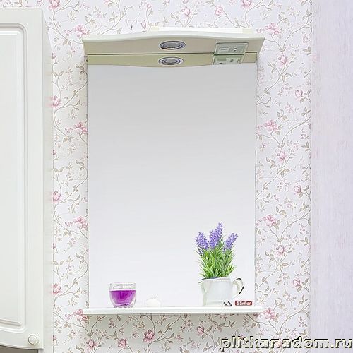 Sanflor Софи Зеркало 50 с полкой, с подсветкой, Белое 50х15,8х74,4