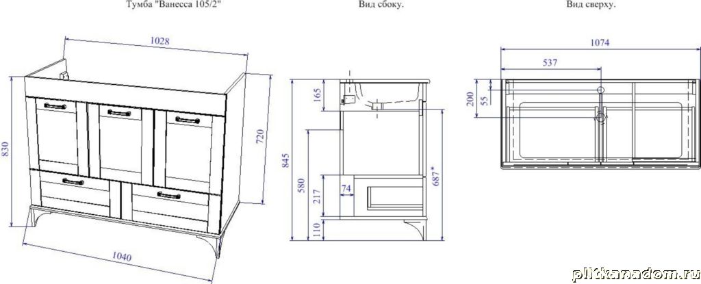 Sanflor Ванесса Тумба 105-2 напольная с раковиной Оскар 105, Индиго 107,5х85,3х47,5