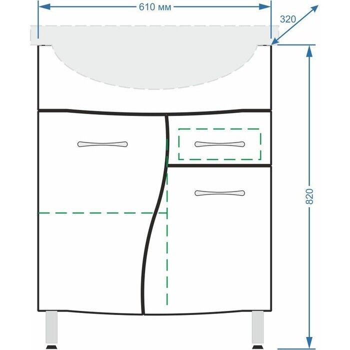 Stella Polar Волна SP-00000056 Тумба под раковину 65, 1 ящ., Байкал 65