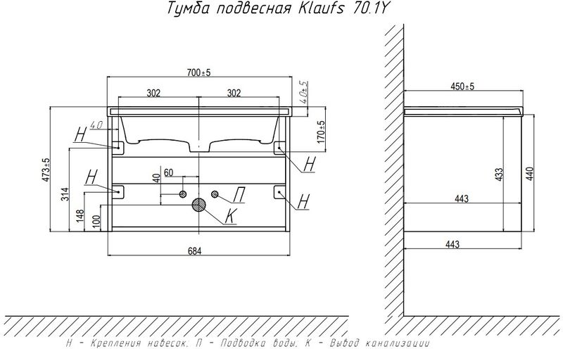 Тумба подвесная Velvex Klaufs 70 см tpKLA.70.1Y-617.216, белый глянец/шатанэ