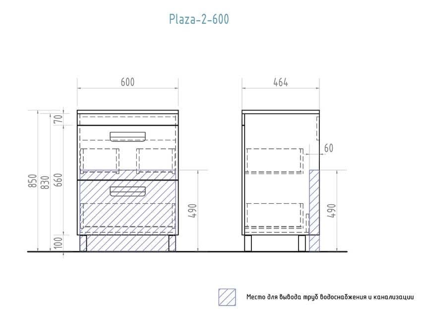 Vigo Plaza 2-600 Тумба с 2-мя ящиками под умывальник VGA