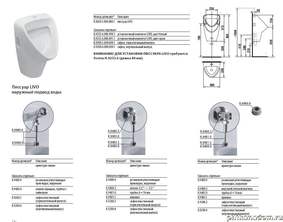 Jika Livo 4020.1.000.000.1 писсуар без сенсора, внешний подвод воды