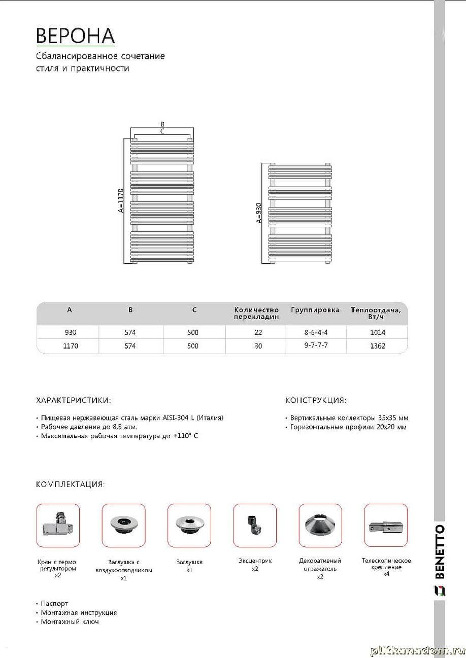 Benetto Верона Водяной полотенцесушитель 40х92,6