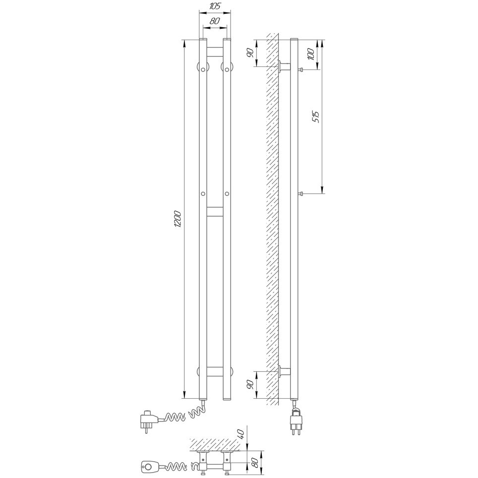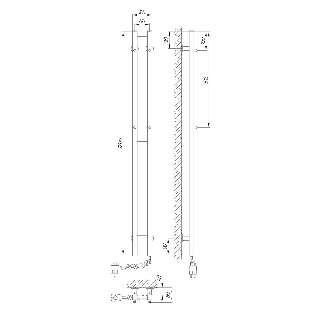 Полотенцесушитель электрический Laris Прайм Дуэт П2 120х8 белый левый