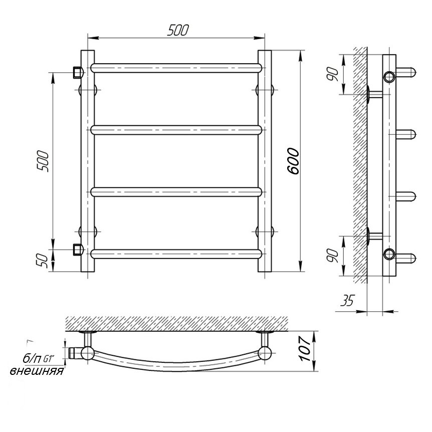 Полотенцесушитель водяной Laris Классик П4 60х50 боковое подключение