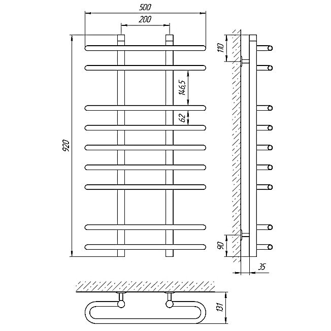 Полотенцесушитель водяной Laris Омега Премиум П7 70х50