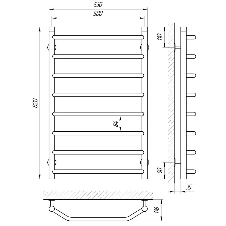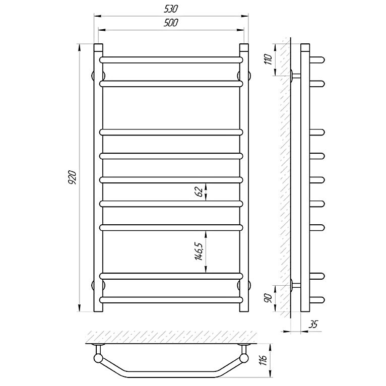 Полотенцесушитель водяной Laris Виктория П7 70х50