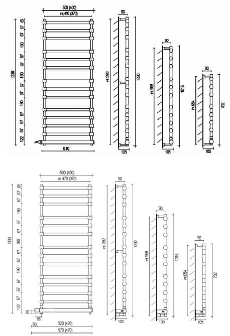 Полотенцесушитель электрический Margaroli Sole 564-8, арт. 5644708ORB, потертая латунь