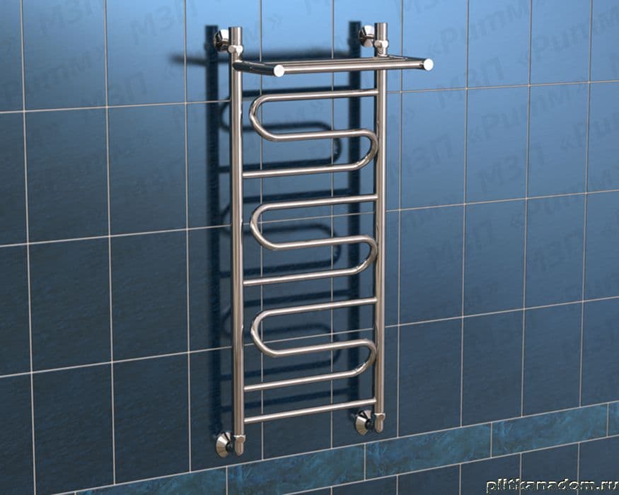 МЗП Ритм Лесенка Зиг-заг Полотенцесушитель водяной с полкой 100х40