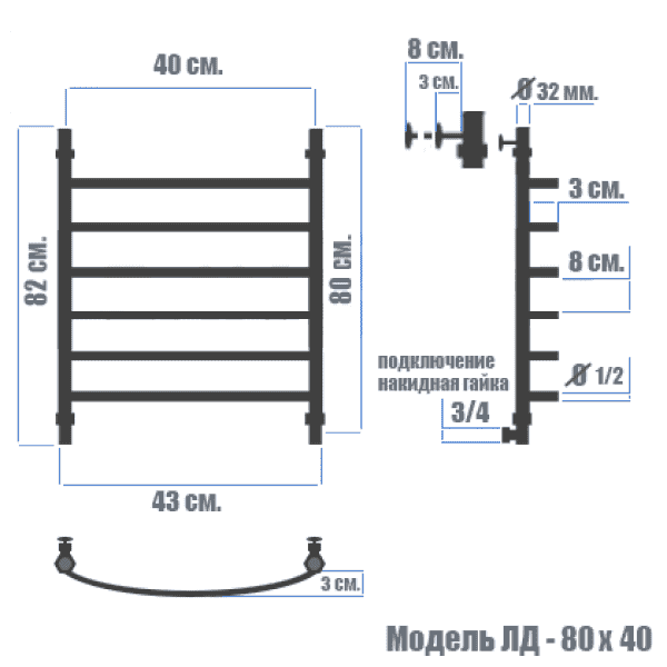 Полотенцесушитель водяной Ника ARC ЛД белый 80 x 40 см