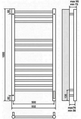 Terminus Аврора s q t 4670078527226 Полотенцесушитель электрический П12 500х1000, 9003 матовый