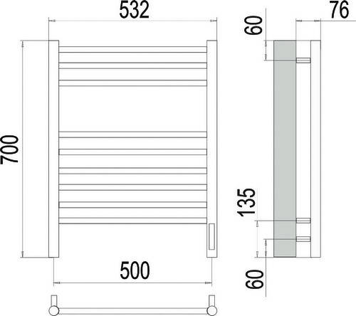 Terminus Аврора s q t 4670078527240 Полотенцесушитель электрический П9 500х700, бронзированный