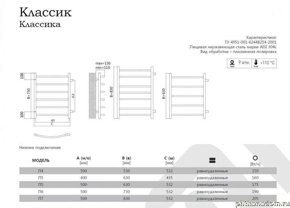 Terminus Классик П7 Водяной полотенцесушитель 50х83