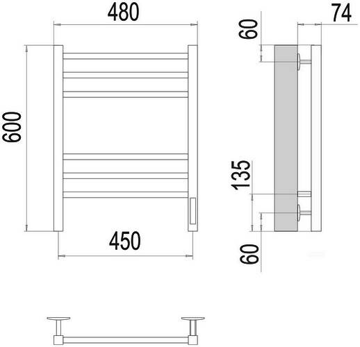 Terminus КС Ватикан 4670078527509 Полотенцесушитель электрический П6 450х600, 9003