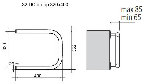 Terminus П-образный 4620768881442 Полотенцесушитель водяной 320х400 (упакована в коробку)