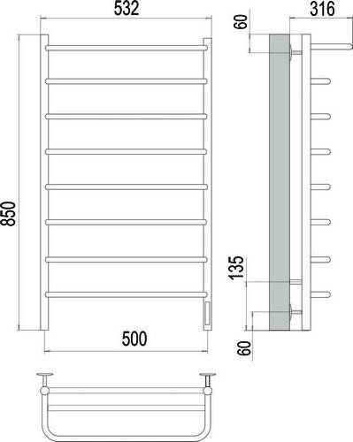 Terminus Полка quick touch 4670078524836 Полотенцесушитель электрический П8 500х850