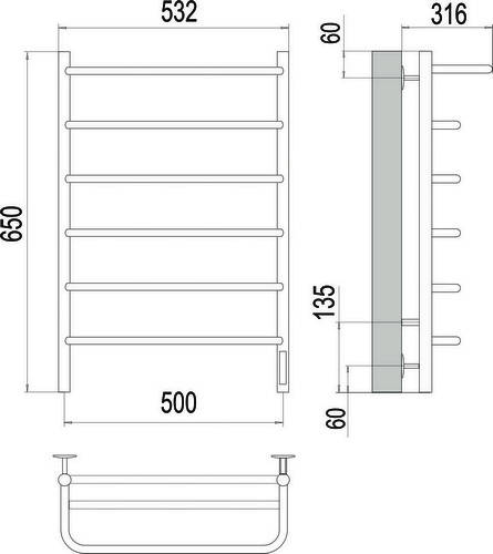 Terminus Полка quick touch 4670078531438 Полотенцесушитель электрический П6 500х650