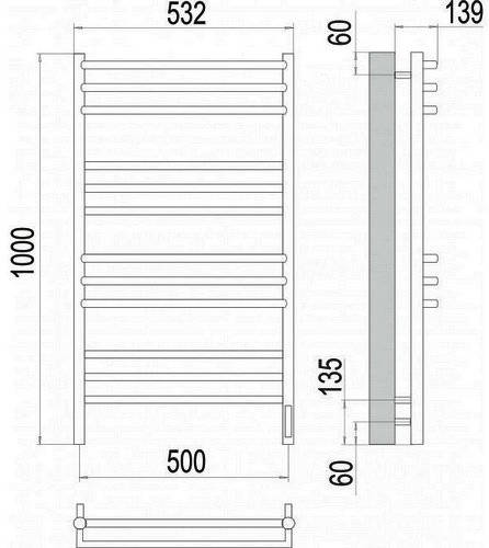 Terminus Прато s q t 4670078527134 Полотенцесушитель электрический П12 500х1000, 9016 глянец