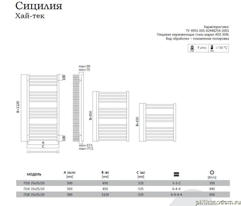 Terminus Сицилия П14 Водяной полотенцесушитель 50х85