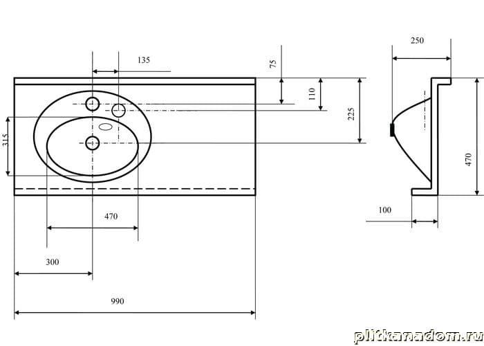 Акватон Отель 1A70083NOT01R Раковина 100, правая с навесами комплект