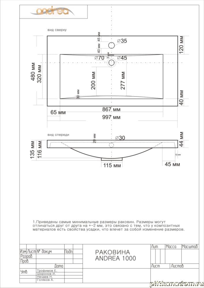 Andrea Andrea Раковина 100x48