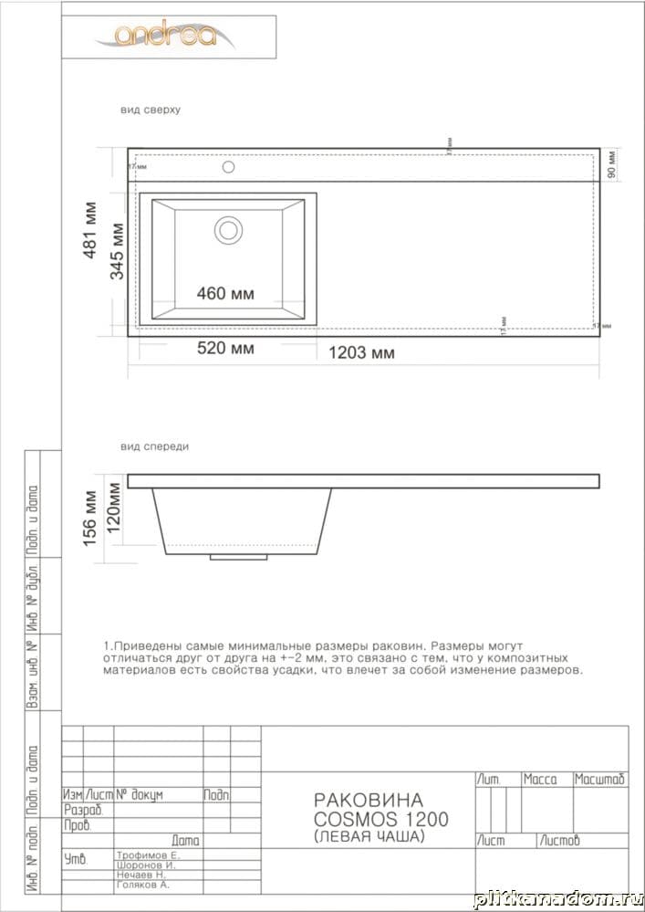 Andrea Cosmos Раковина, правая 120x48