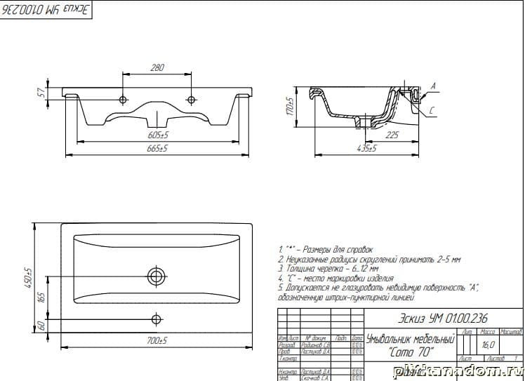 Cersanit Como S-UM-COM70-1-w Раковина встраиваемая 70