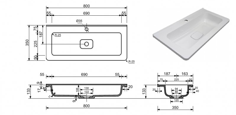 Раковина Creto Oro 80 см