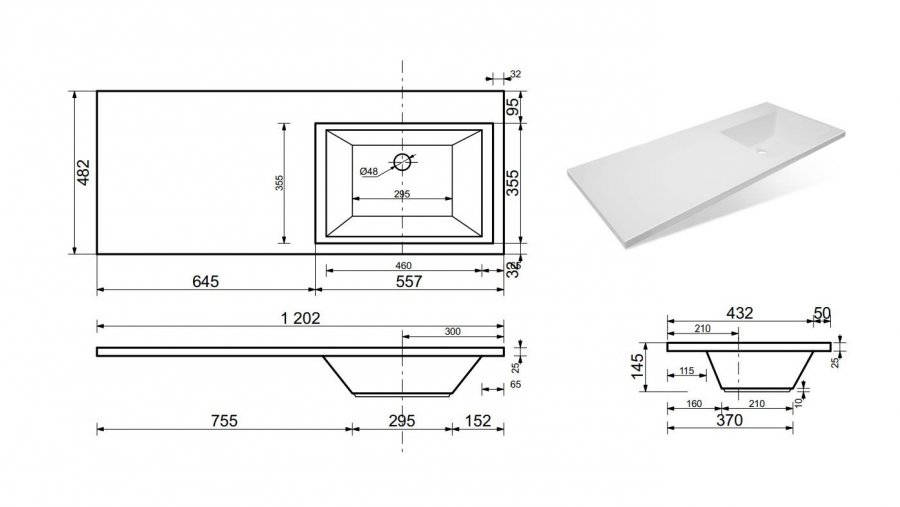 Эстет Даллас ФР-00001528 Раковина Даллас правая 120х48