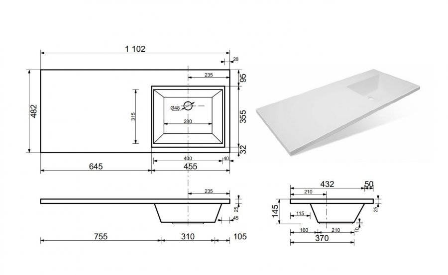 Эстет Даллас ФР-00001668 Раковина Даллас правая 110х48