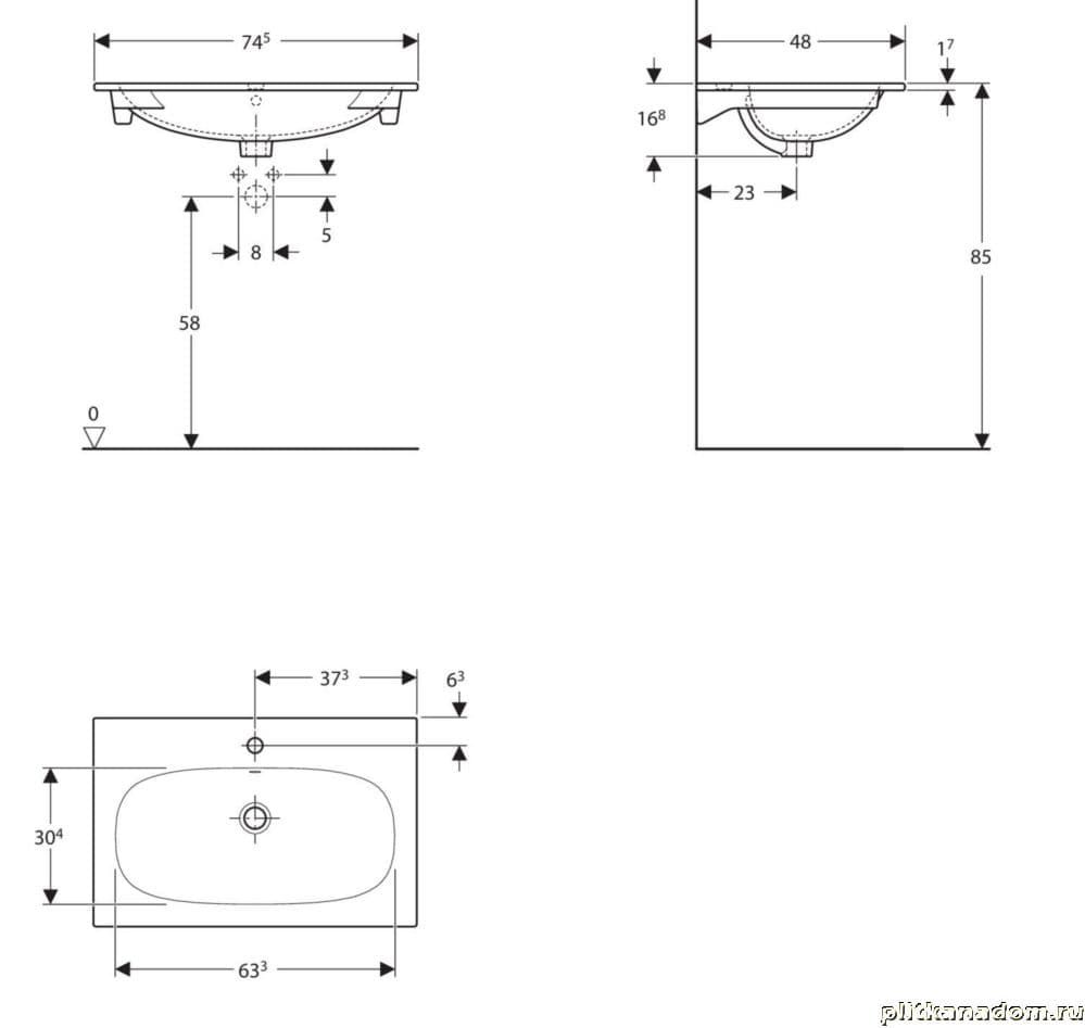 Keramag Acanto 500.641.01.2 Встраиваемая раковина 75x48, с отверстием под смеситель, с переливом