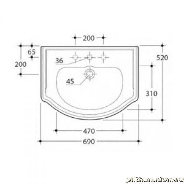 Kerasan Retro 1046nero-lucido-1 Раковина 69х52 с 1 отверстием