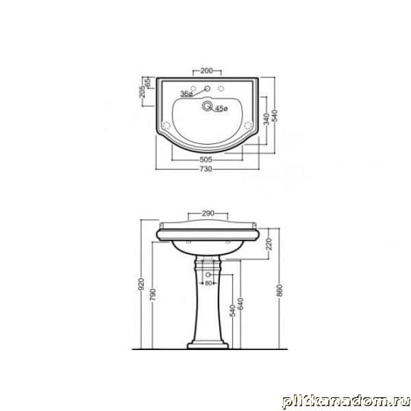 Kerasan Retro 1047nero-lucido-1 Раковина 73х54 с 1 отверстием