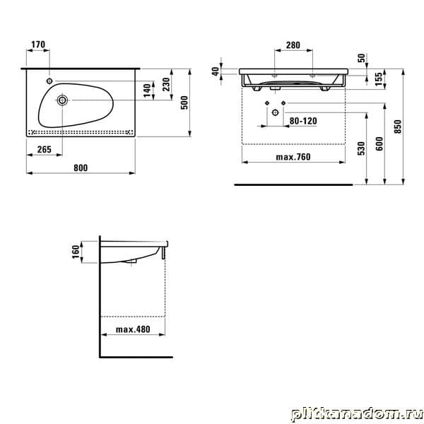 Laufen Palomba 8.1480.4.000.104.1 раковина 80 см с отверстием под смеситель
