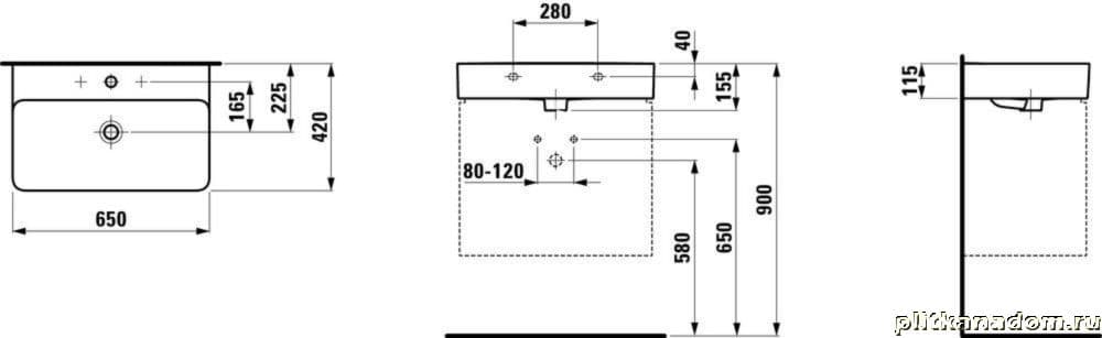 Laufen Val 8.1028.4.000.104.1 Раковина с отверстием для смесителя 65x42х11,5