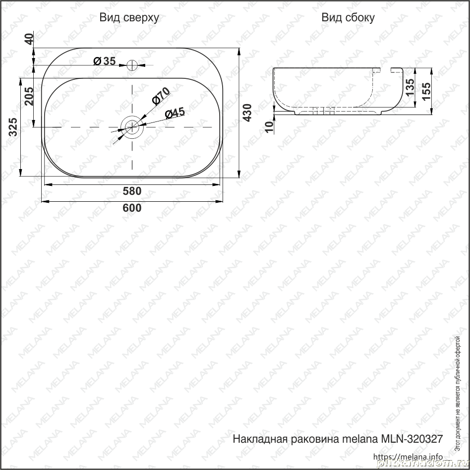 Накладная раковина Melana mln-320327