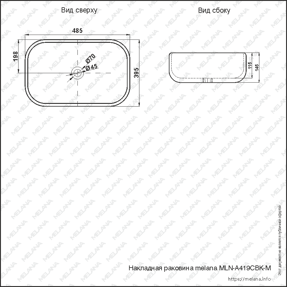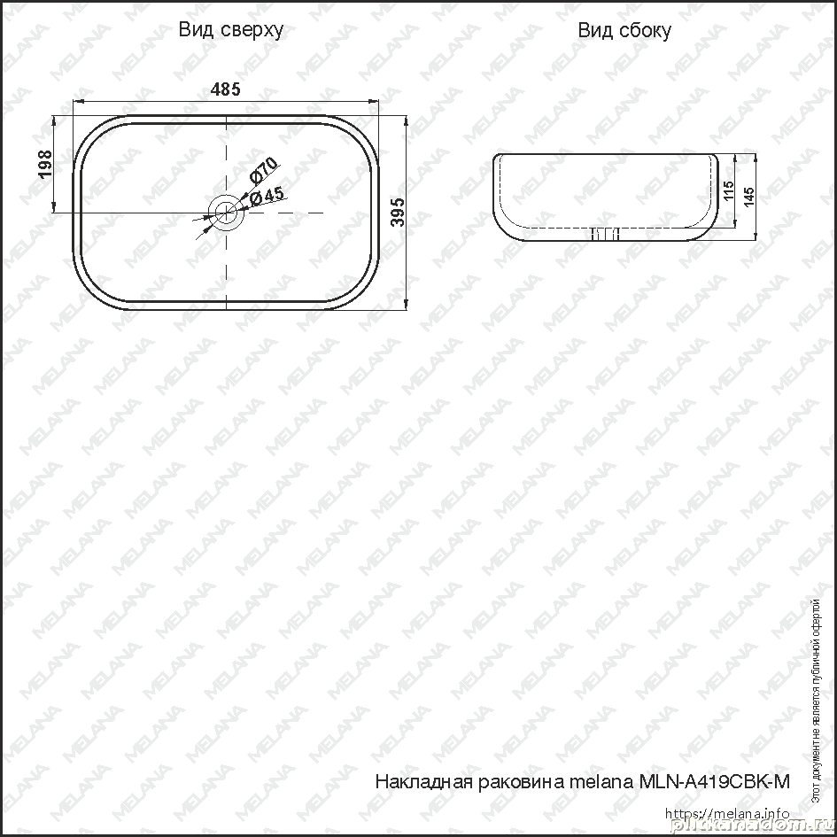Накладная раковина Melana mln-a419-cbk-m черная Матовая