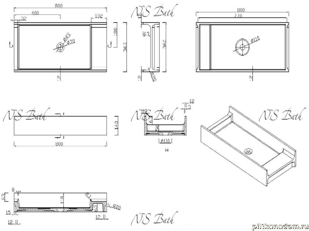 NS Bath NST-80360M Раковина 80х36х14