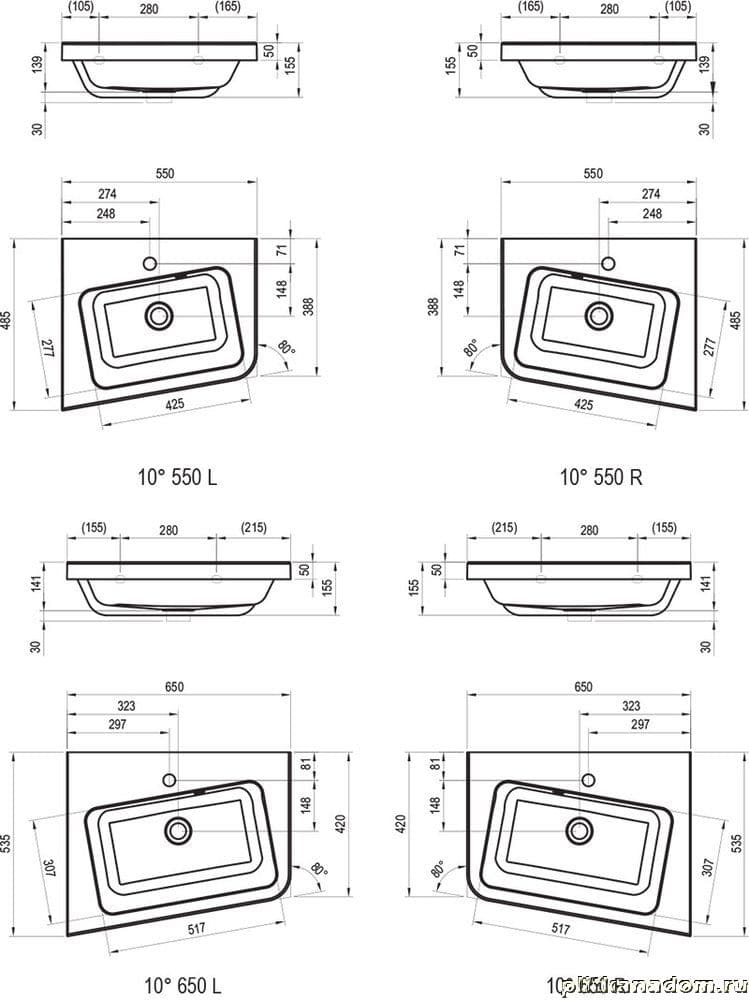 Ravak 10° XJIP1165000 Умывальник 65 R c отверстиями