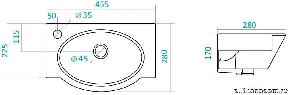 Santek Форум 1.WH11.0.542 умывальник 45 см, левое отв.