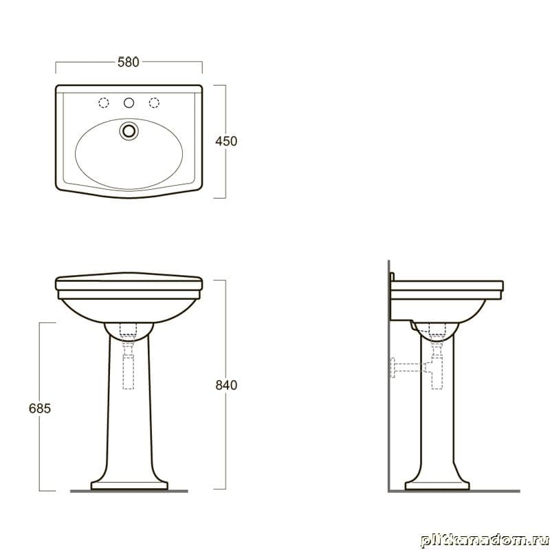 Simas Londra LO914bi-3 Раковина 58x45см с 3 отверстиями под смеситель (2 отв. выбитых вручную)