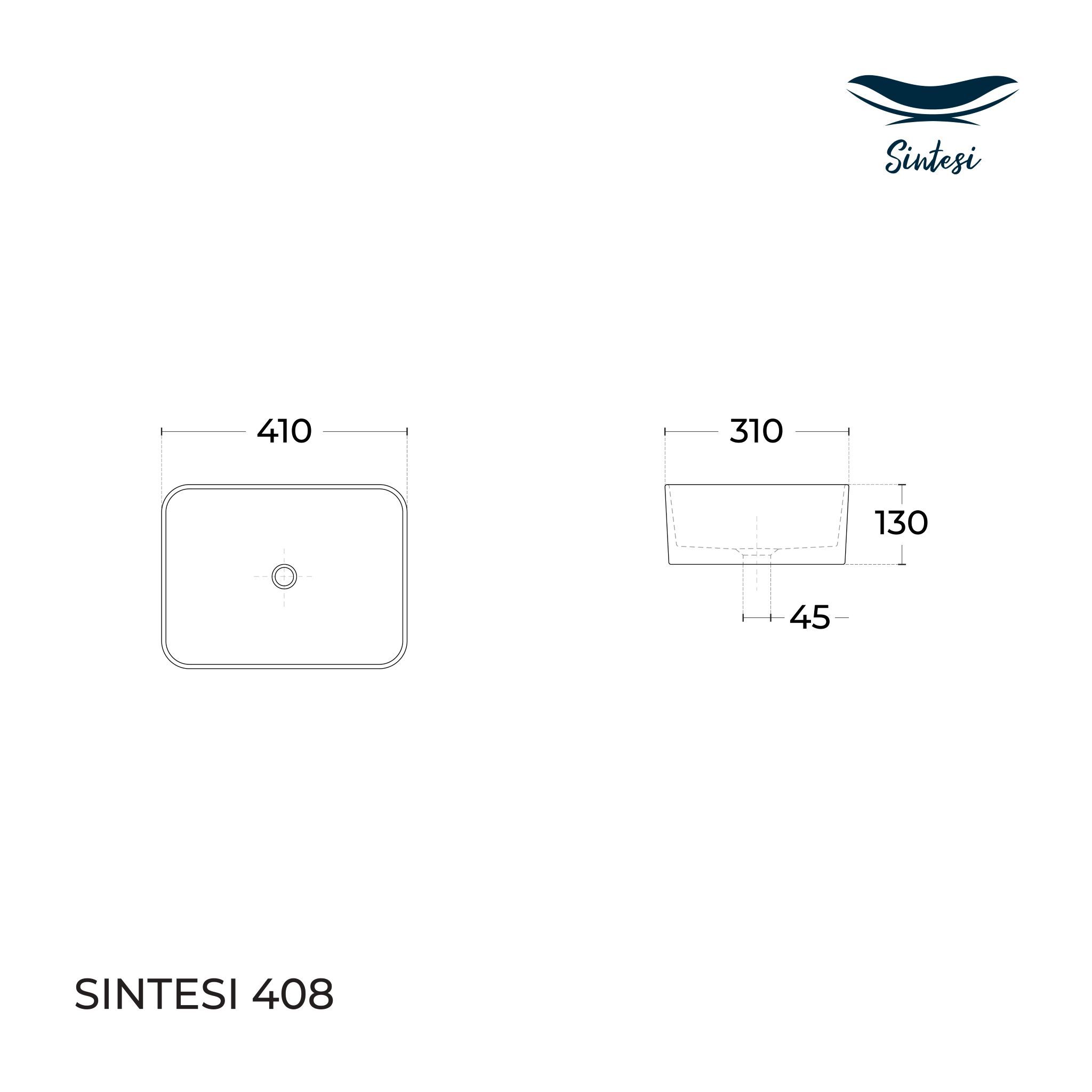 Sintesi SIN-LVB-APP-408 Раковина накладная, белая 41х31, без отверстия под смеситель