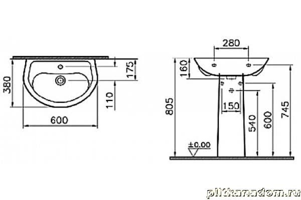 Vitra Arkitekt 9601B003-7650 Раковина с пьедесталом