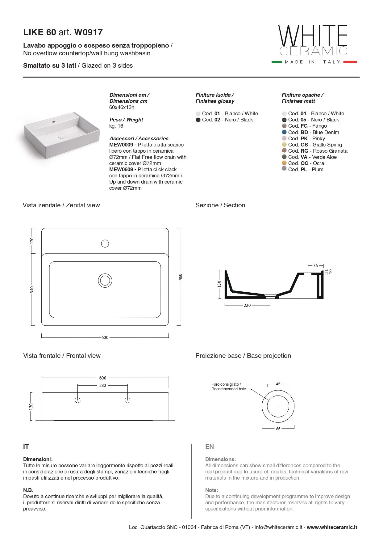 White Ceramic Like, накладная/подвесная прямоугольная раковина с отверстием п/с 60x46x13h см, черный матовый