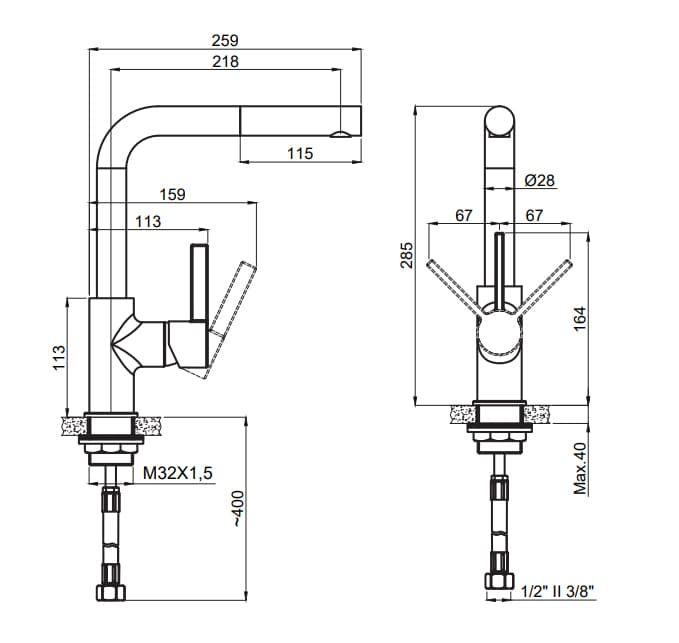 Смеситель для кухни Adell Kelvin с выдвижным изливом 15734431