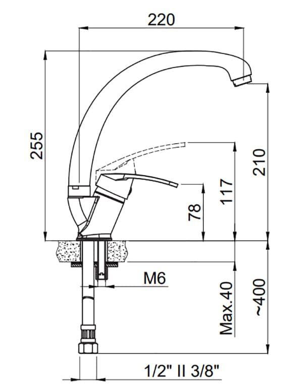 Смеситель для кухни Adell Luna с поворотным изливом 15024431