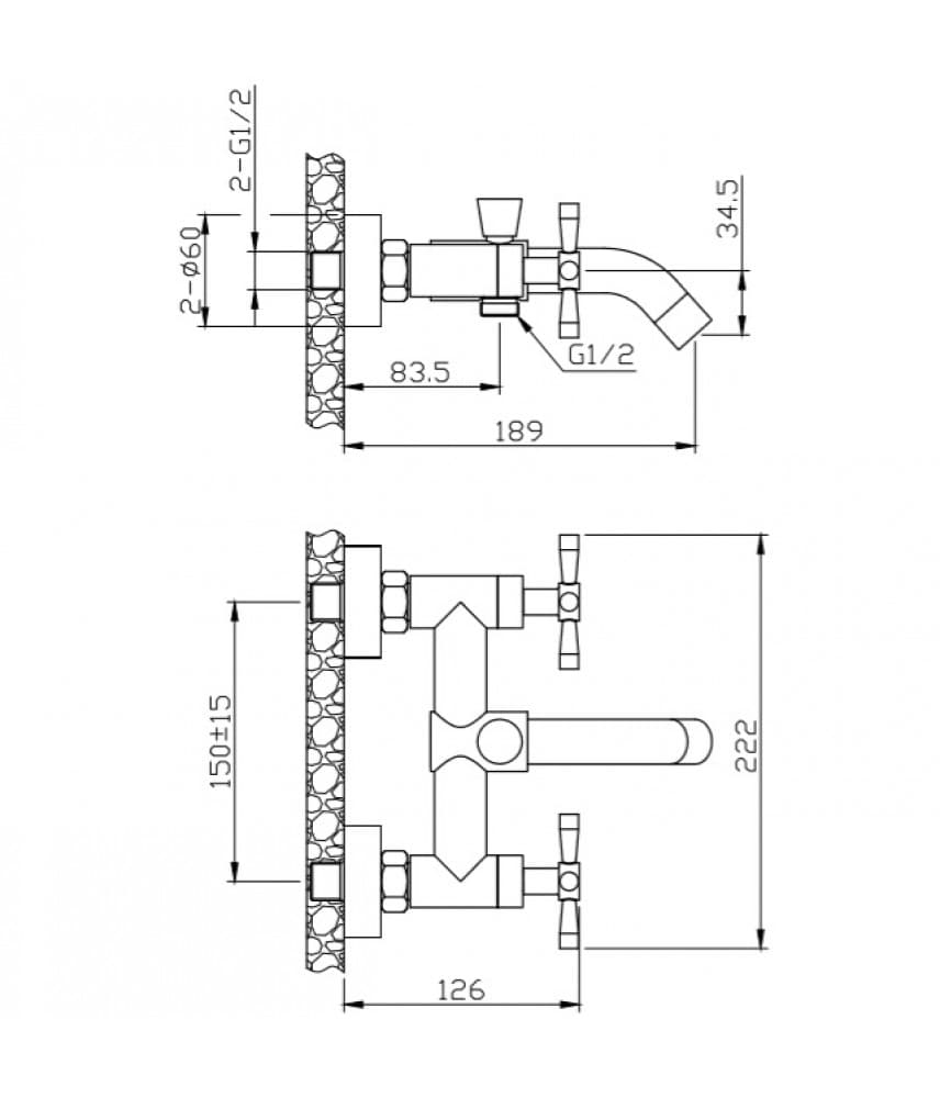 Orange Mia M34-100Ni двухзахватный смеситель для ванны/душа