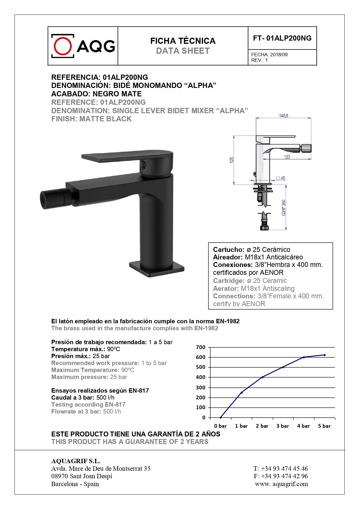 AQG Alpha, смеситель для биде без донного клапана, черный матовый, 01ALP200NG